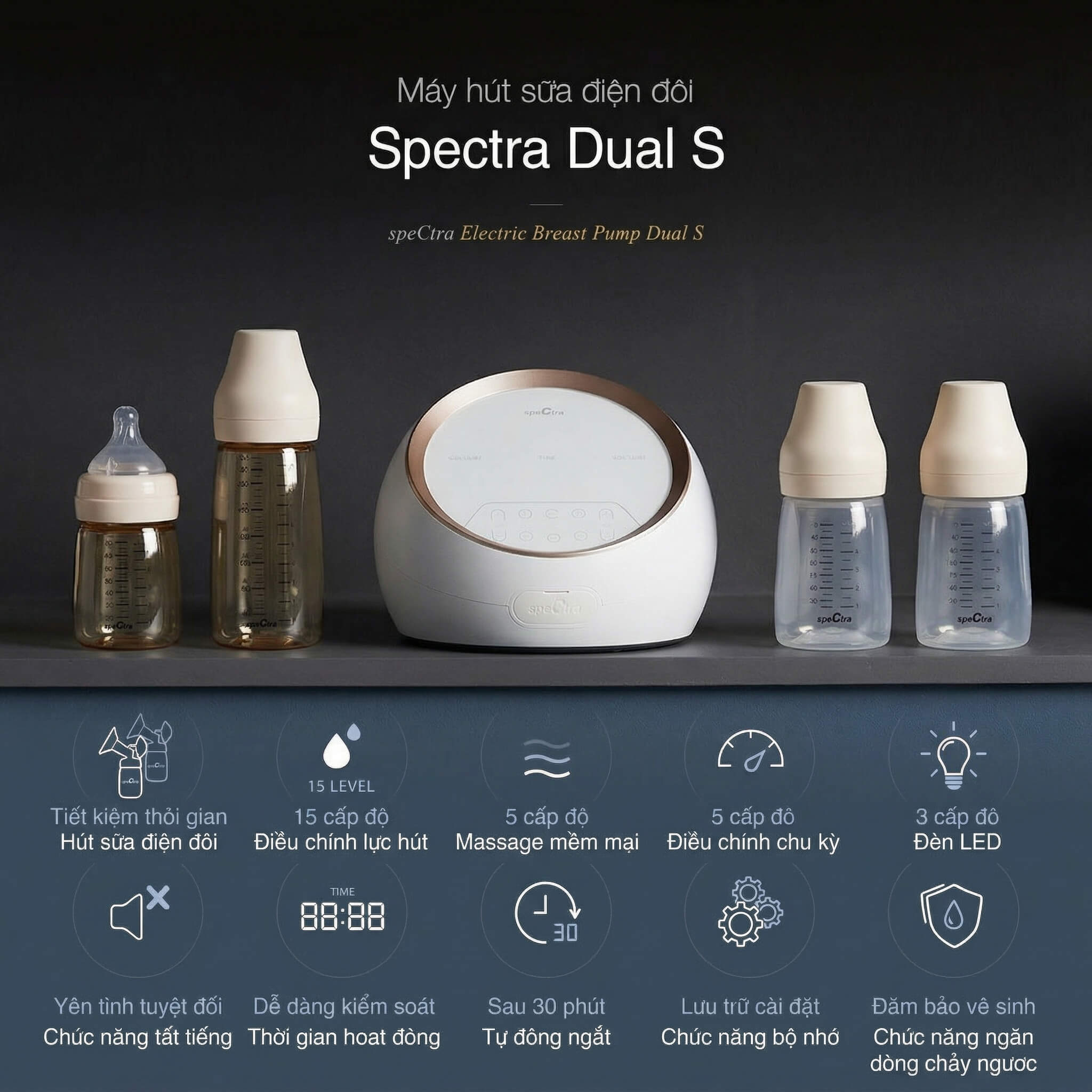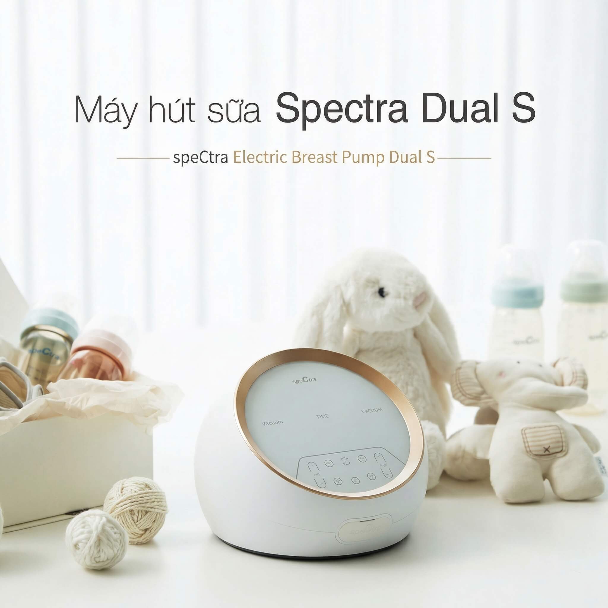 Nhiều phụ kiện như phễu hút, van, màng backflow protector và bình trữ sữa tương thích theo chuẩn Spectra chung, có thể dùng được cho cả Dual S lẫn các dòng S1+, S2+. Tuy nhiên, điều quan trọng nhất mẹ cần kiểm tra là kích thước phễu phù hợp với núm vú — phễu quá rộng hoặc quá chật đều ảnh hưởng đến hiệu quả hút và có thể gây khó chịu. Spectra Vietnam cung cấp hướng dẫn đo size phễu miễn phí nếu bạn cần hỗ trợ.