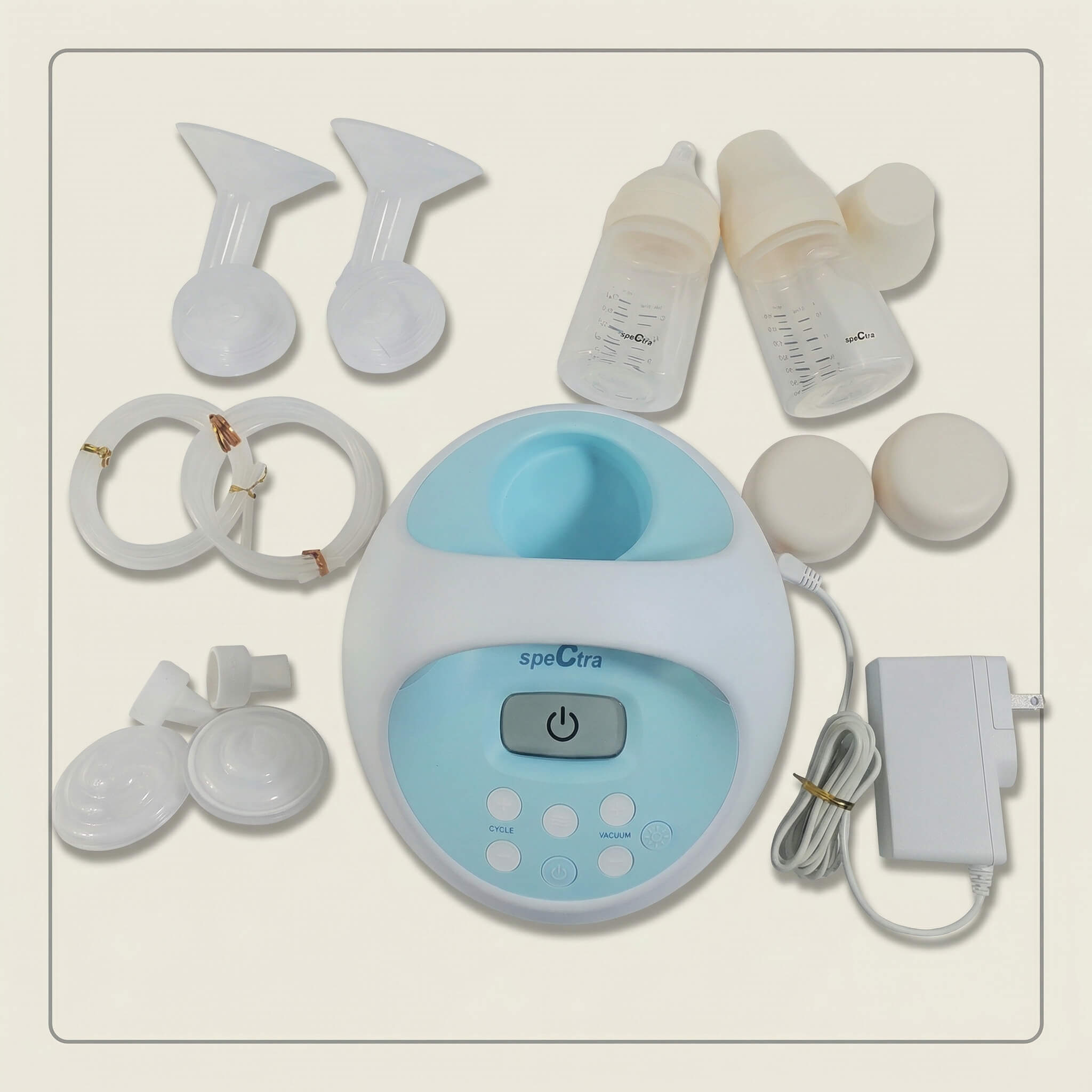 Mỗi bộ máy Spectra S1 Plus chính hãng đều đi kèm đầy đủ "hệ sinh thái" phụ kiện để mẹ có thể bắt đầu hành trình hút sữa ngay lập tức: